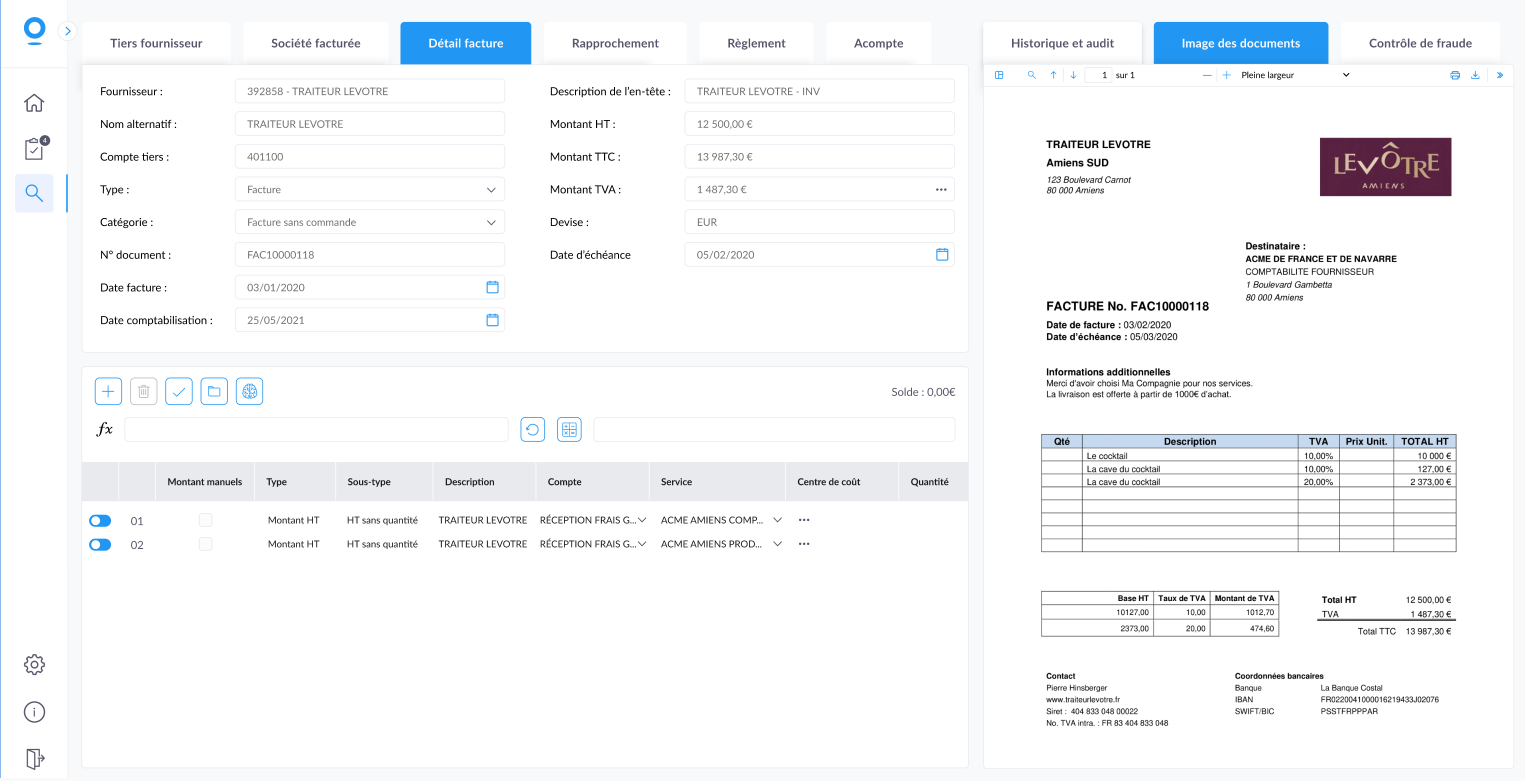 Capture et concentre toutes les factures et les documents connexes à leur bon traitement :