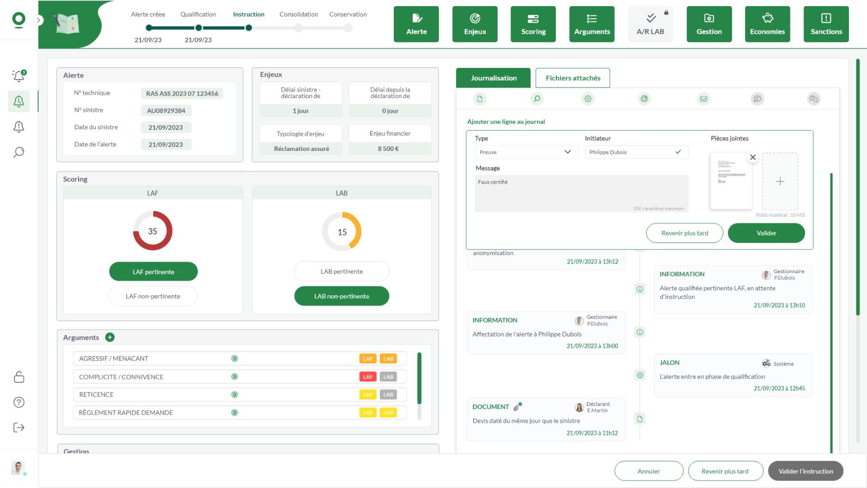 - Un processus d’instruction complet, ergonomique et normalisé garantit une efficacité et traçabilité maximale pour le traitement de tous les dossiers de fraude